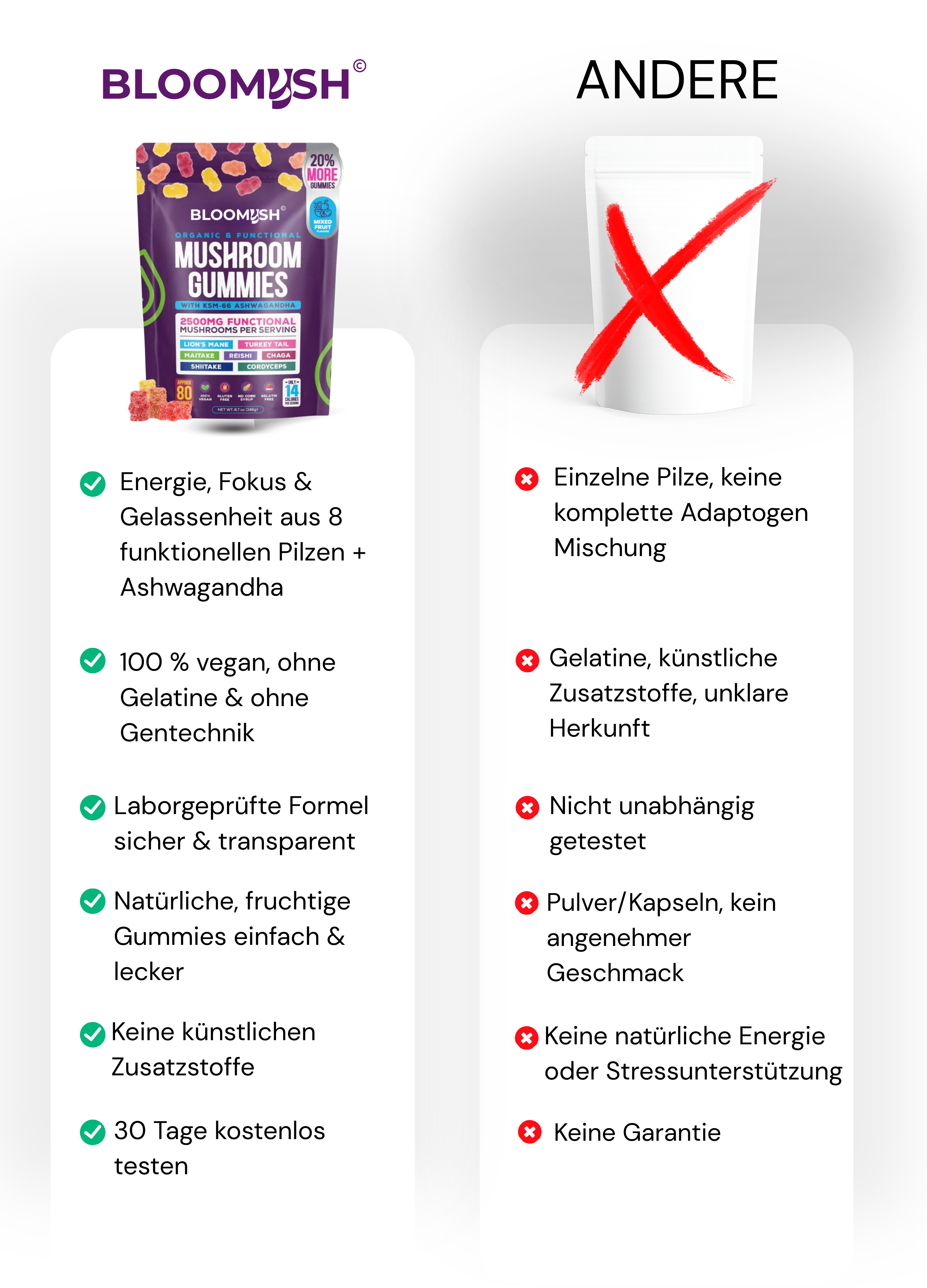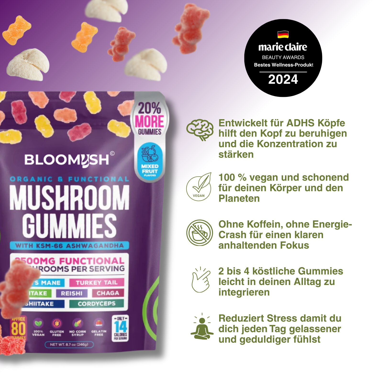 Was sind die Hauptvorteile der Bloomysh™ Pilz-Ashwagandha-Gummies?